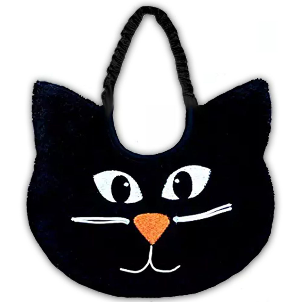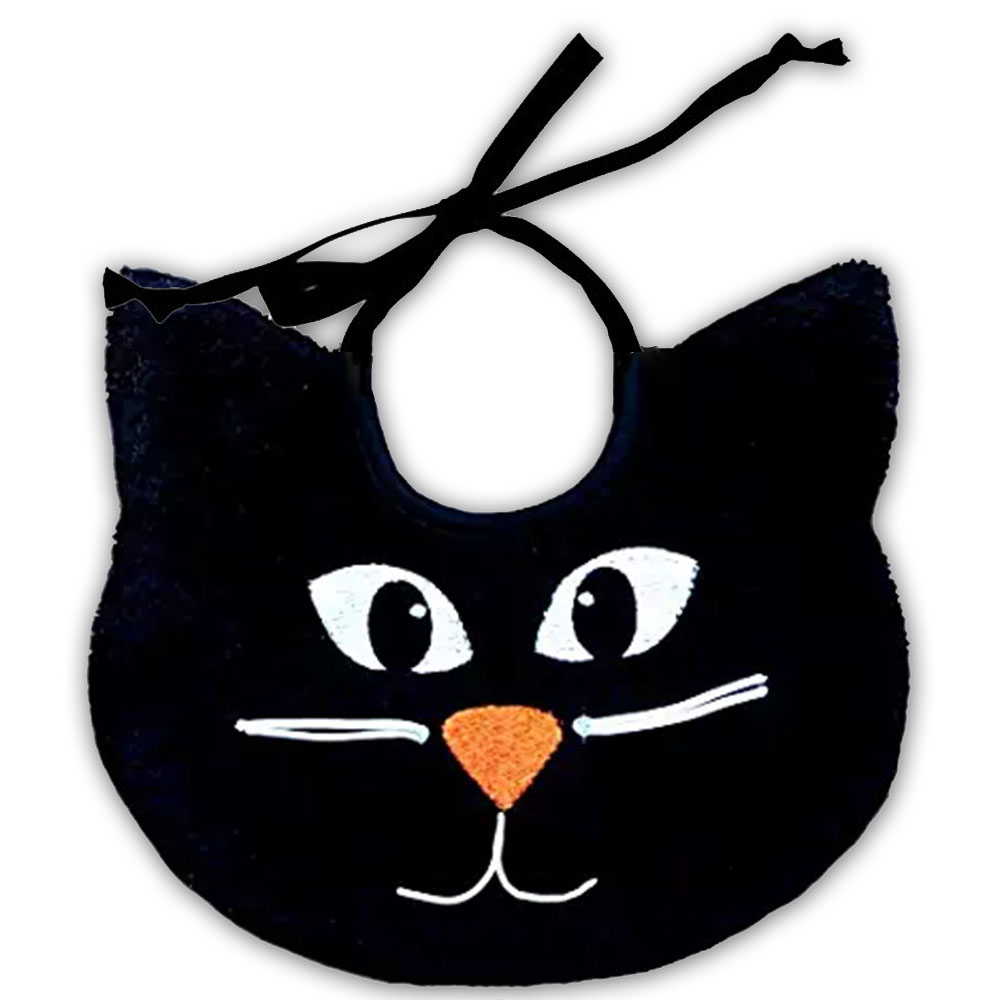 Handgefertigtes, besticktes Lätzchen aus Frottee in Form einer schwarzen Katze
