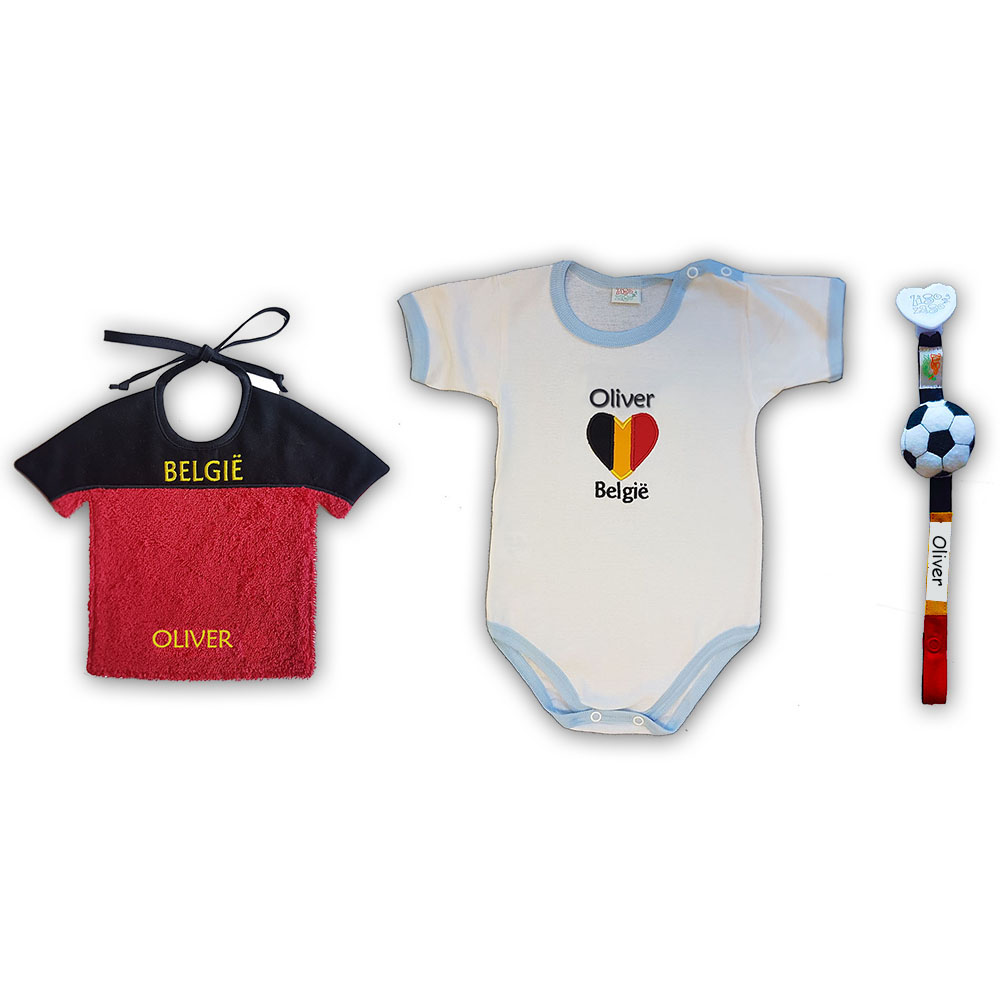 Belgium 3-piece set consisting of bodysuit, bib and dummy chain