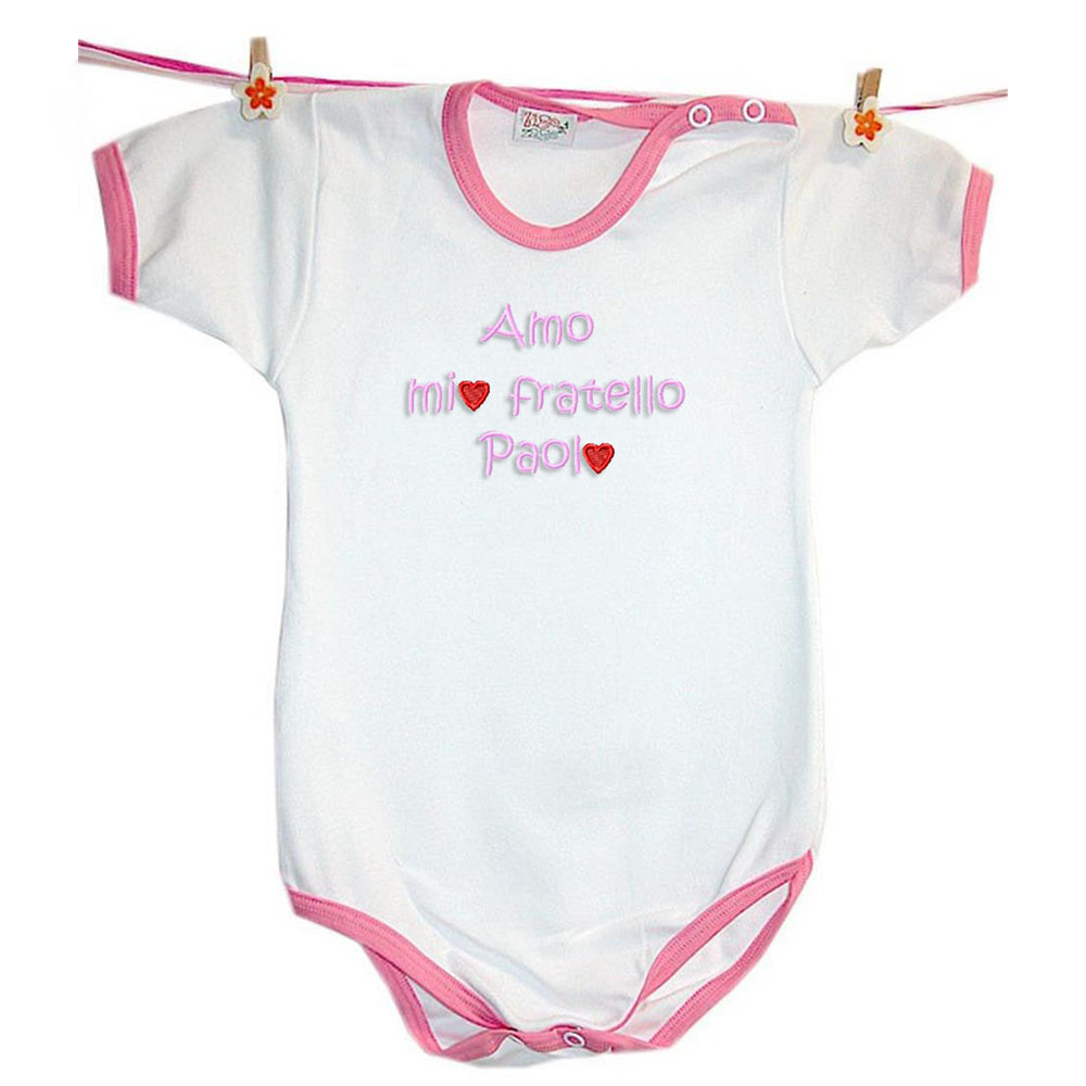 Handmade Short-sleeved white baby bodysuit embroidered romper: I love my brother