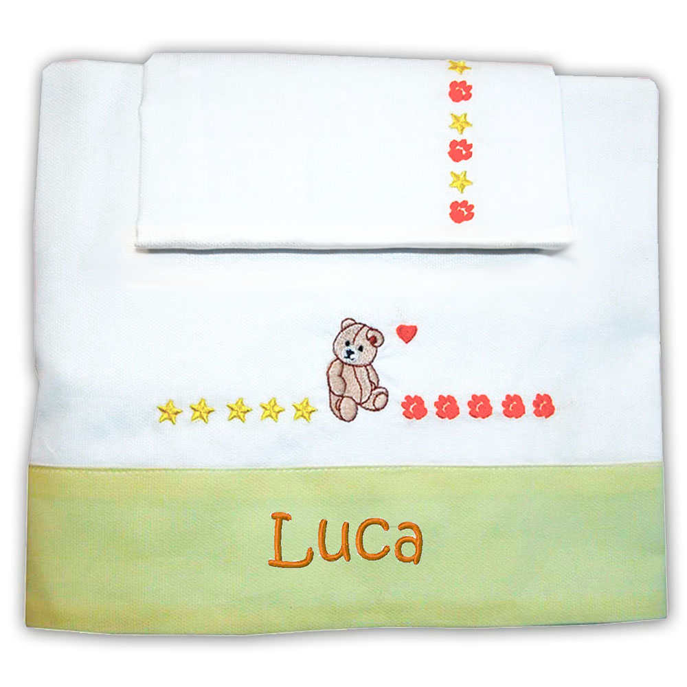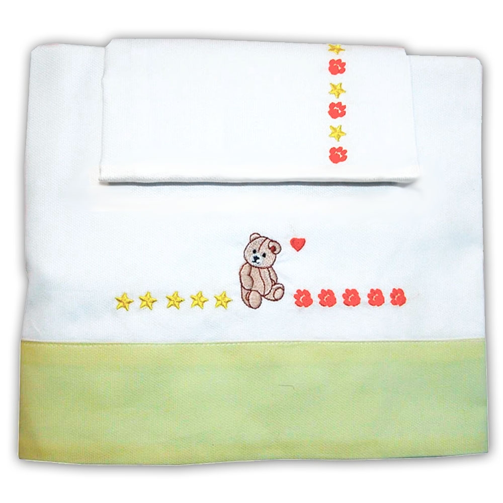 Handmade 100% cotton set for crib or little bed with “Little Bear” embroidery composed of: