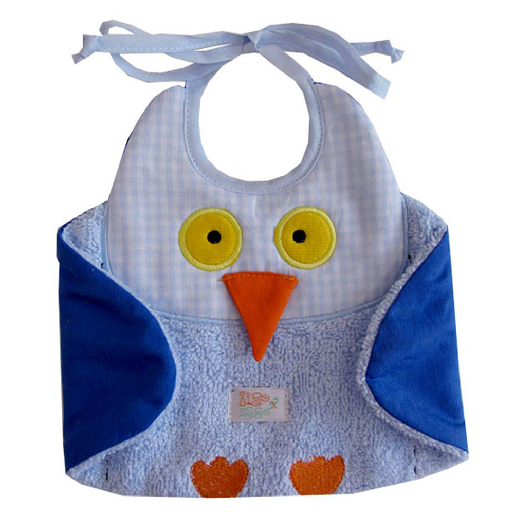 Embroidered bib for babies with the shape of a little owl.
