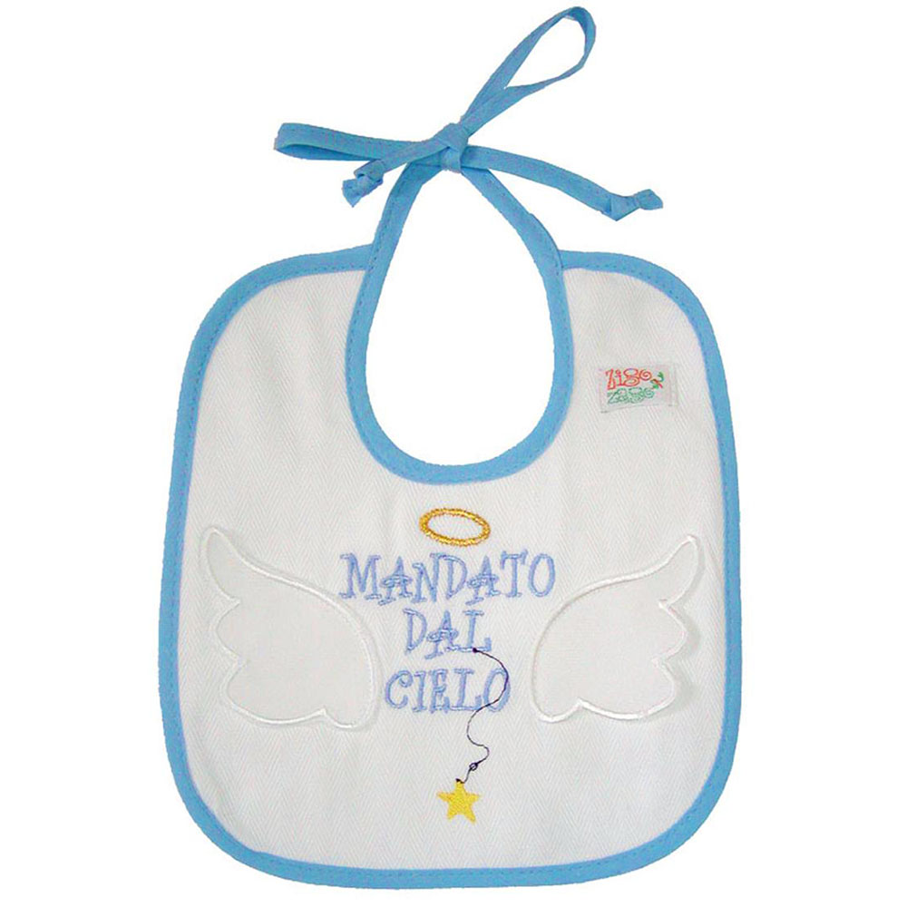Zigozago Bavaglino ricamato in piquet di cotone “Mandato dal cielo” bianco unisex taglia unica 0-3 mesi BAVSENT
