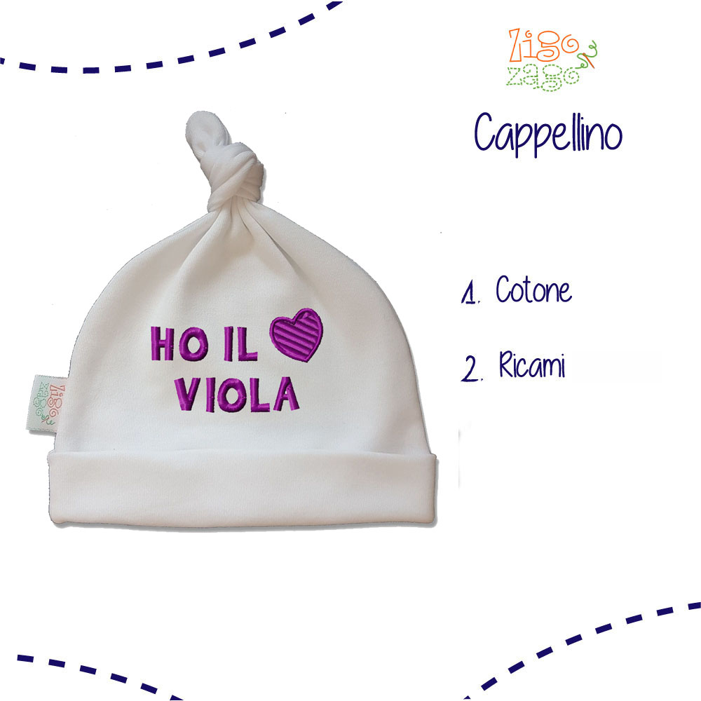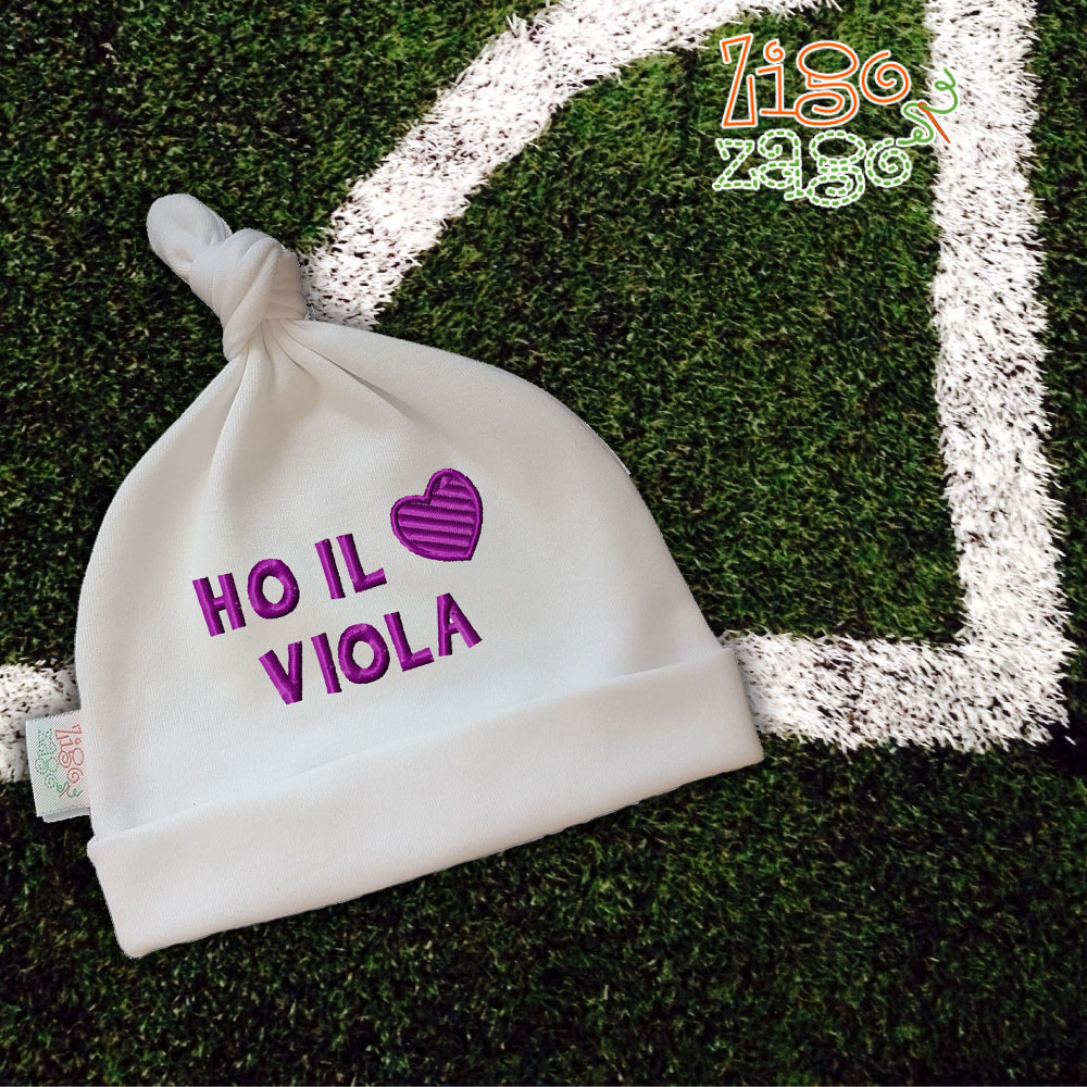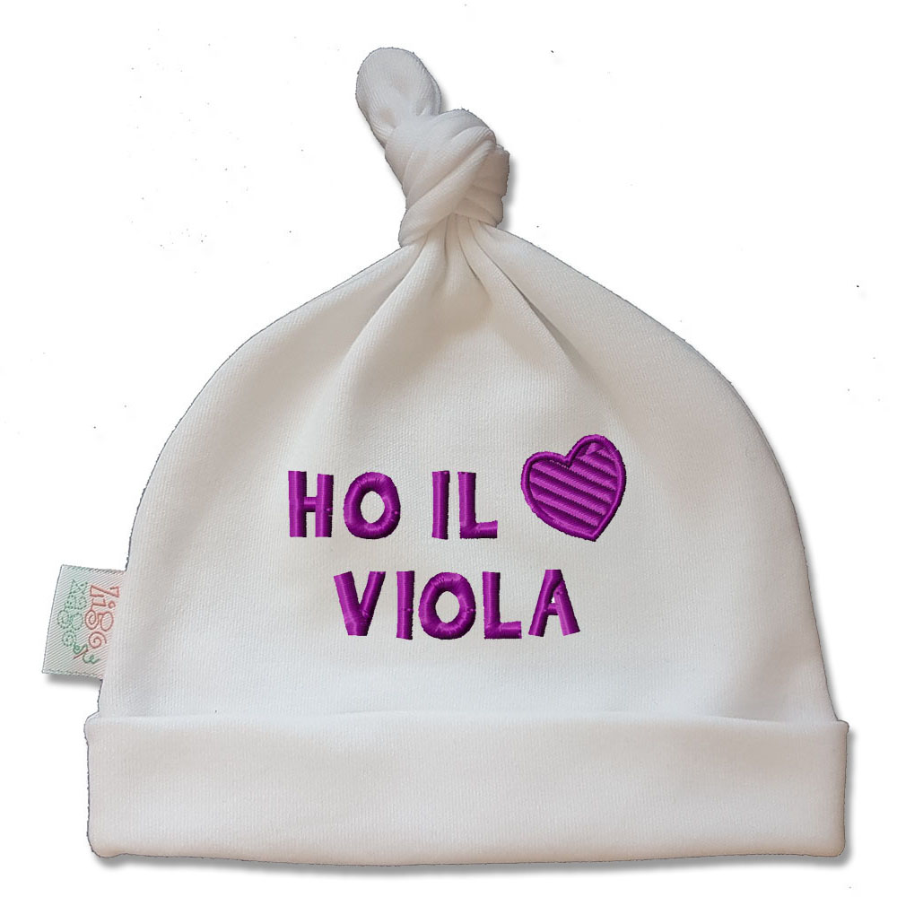 Zigozago Cappello cuffia neonato in cotone “Ho il cuore Viola” unisex CAPP_FIORENTINA